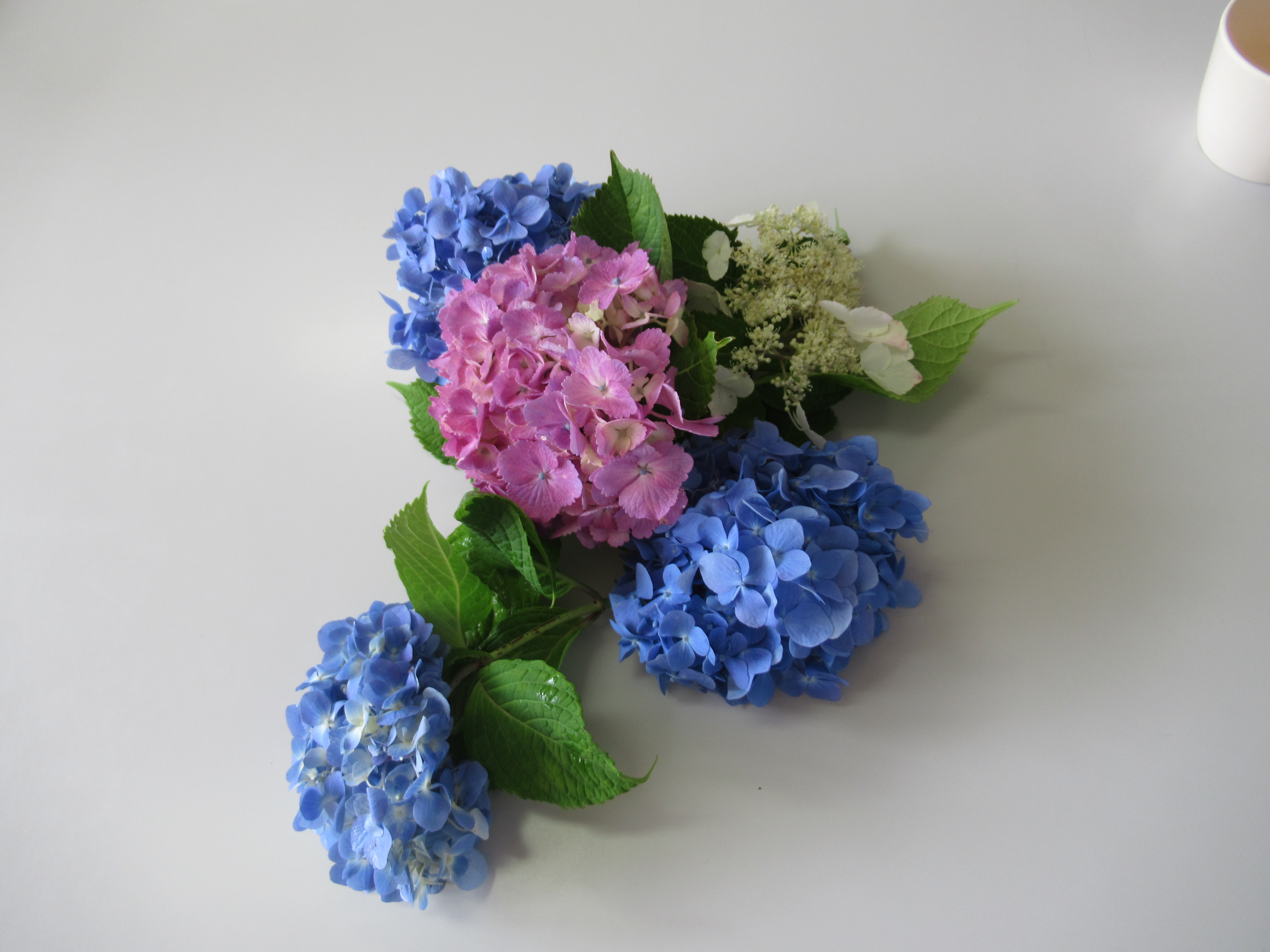 職員が紫陽花(あじさい)を持ってきたので、紫陽花と一緒に写真📷を撮ることにしました。