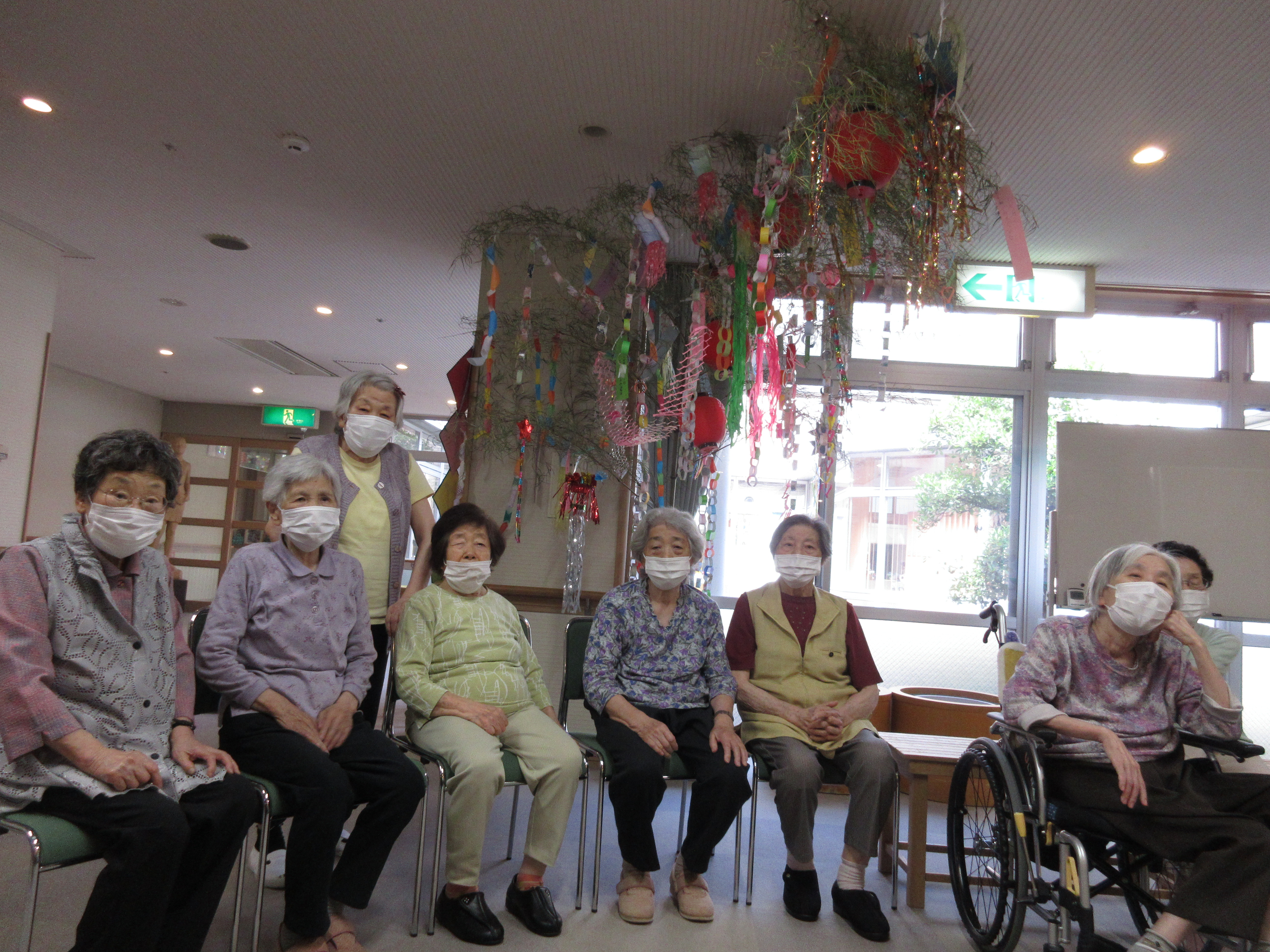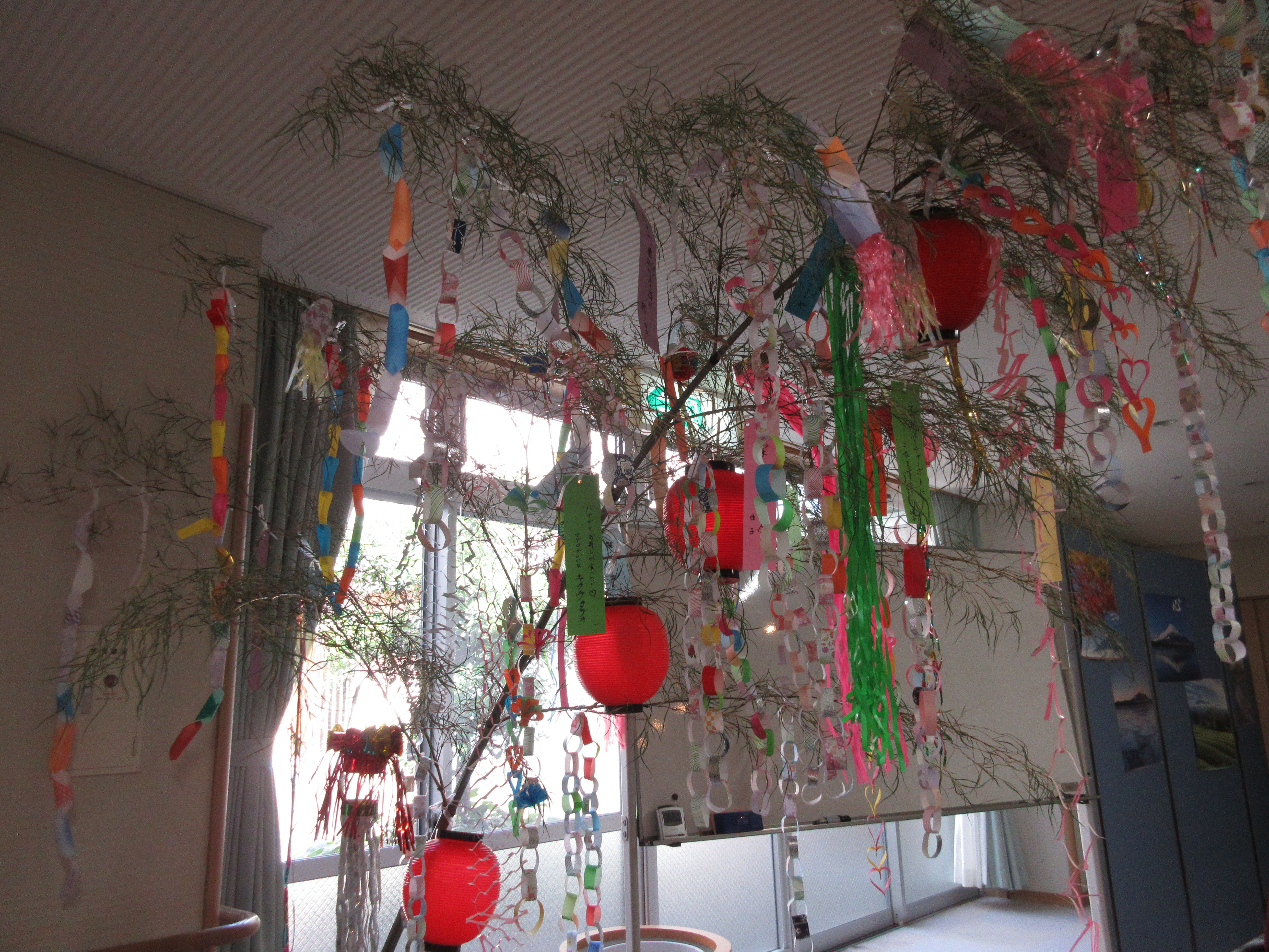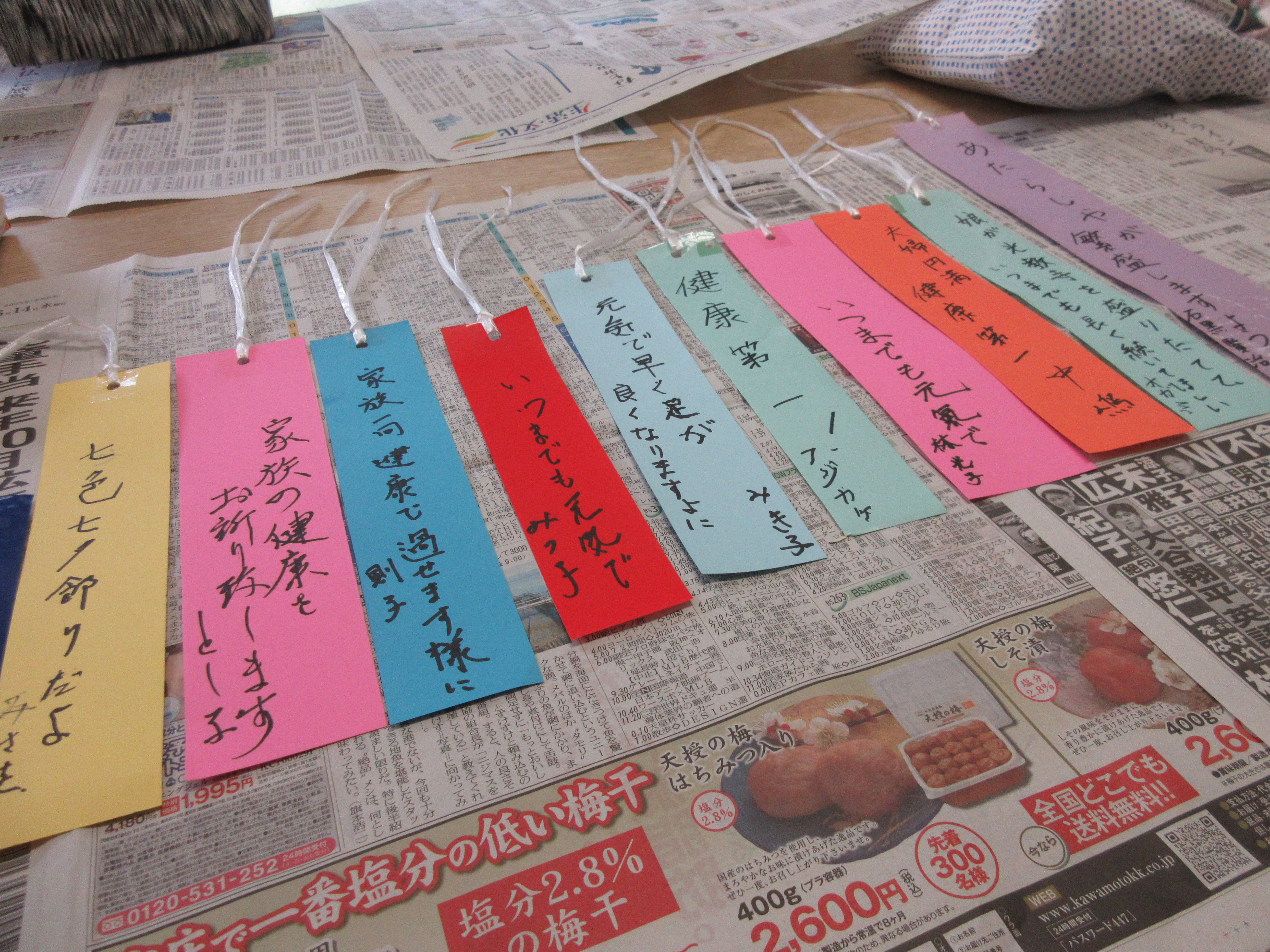 の飾りを折り紙で作り、短冊に願い事を書いていただきました。
