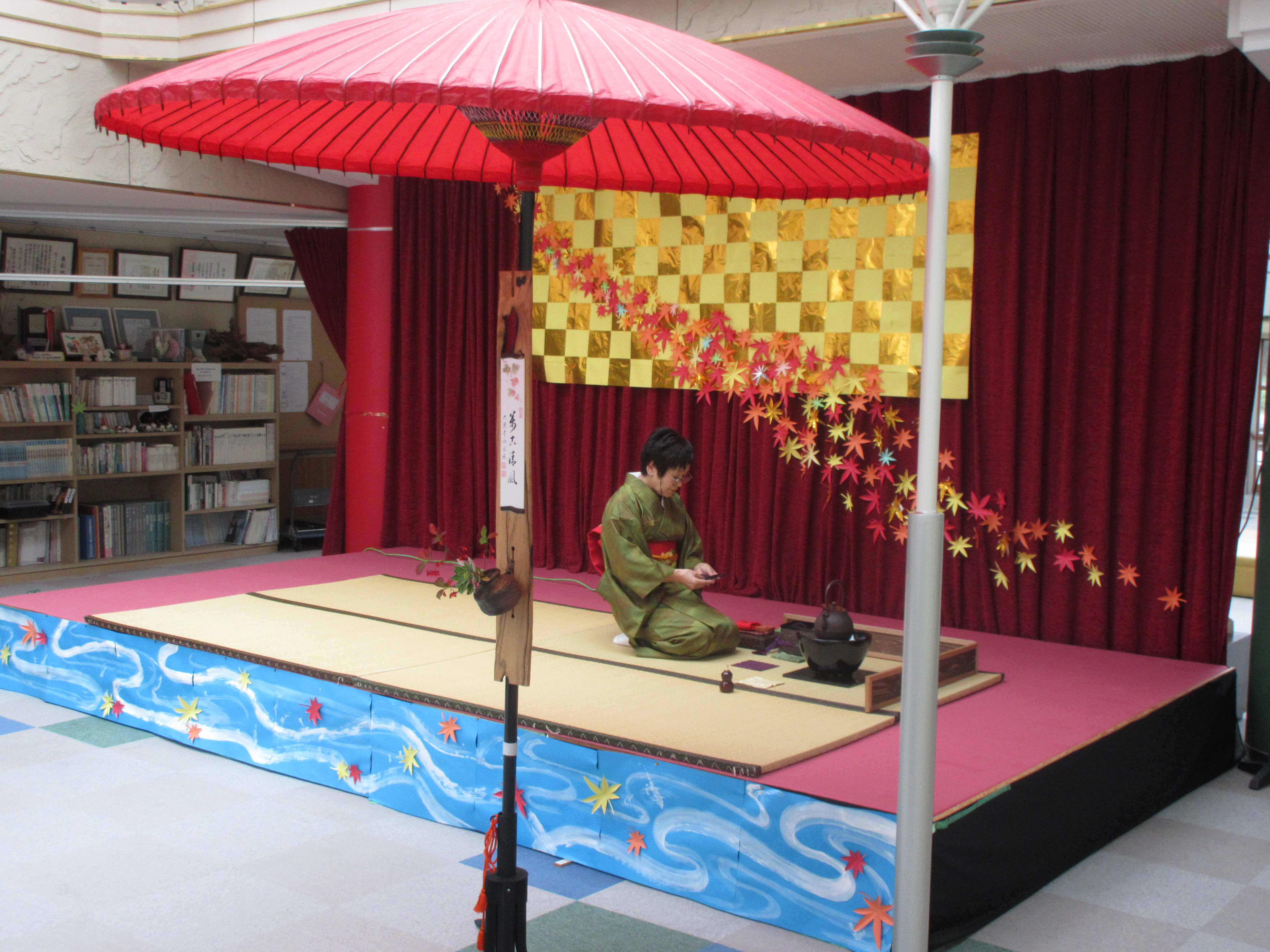 舞台にてお点前も披露していただき、これまでお茶を習っておられた利用者の方は熱心に舞台前で見ておられました。
