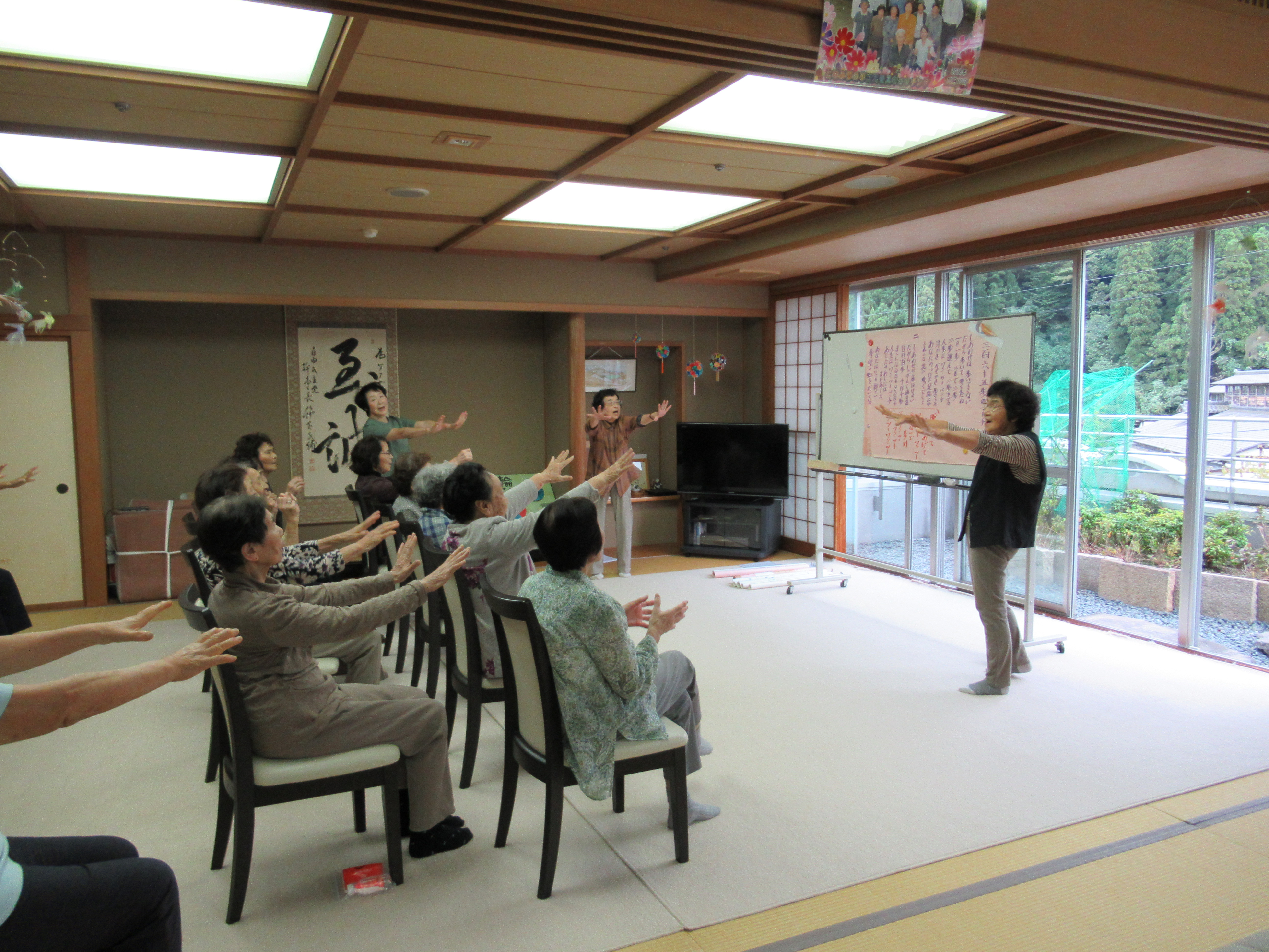 いろいろな歌を歌うだけでなく、そこからいろいろな思い出話も出てきて利用者の皆さんの表情も活き活きとされていました。