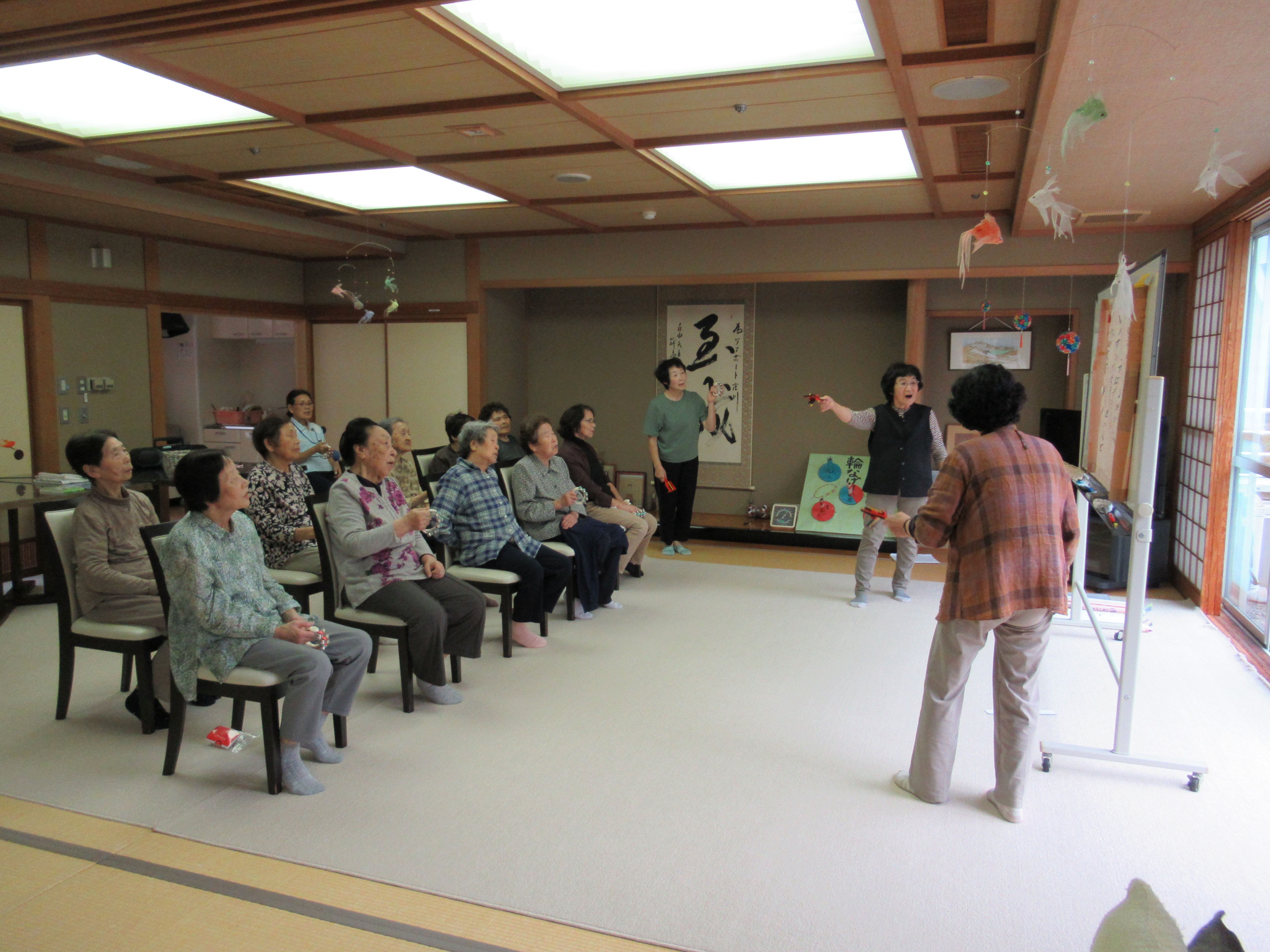 また、体操をしたり、楽器を使って合奏をして楽しい時間を過ごしました。