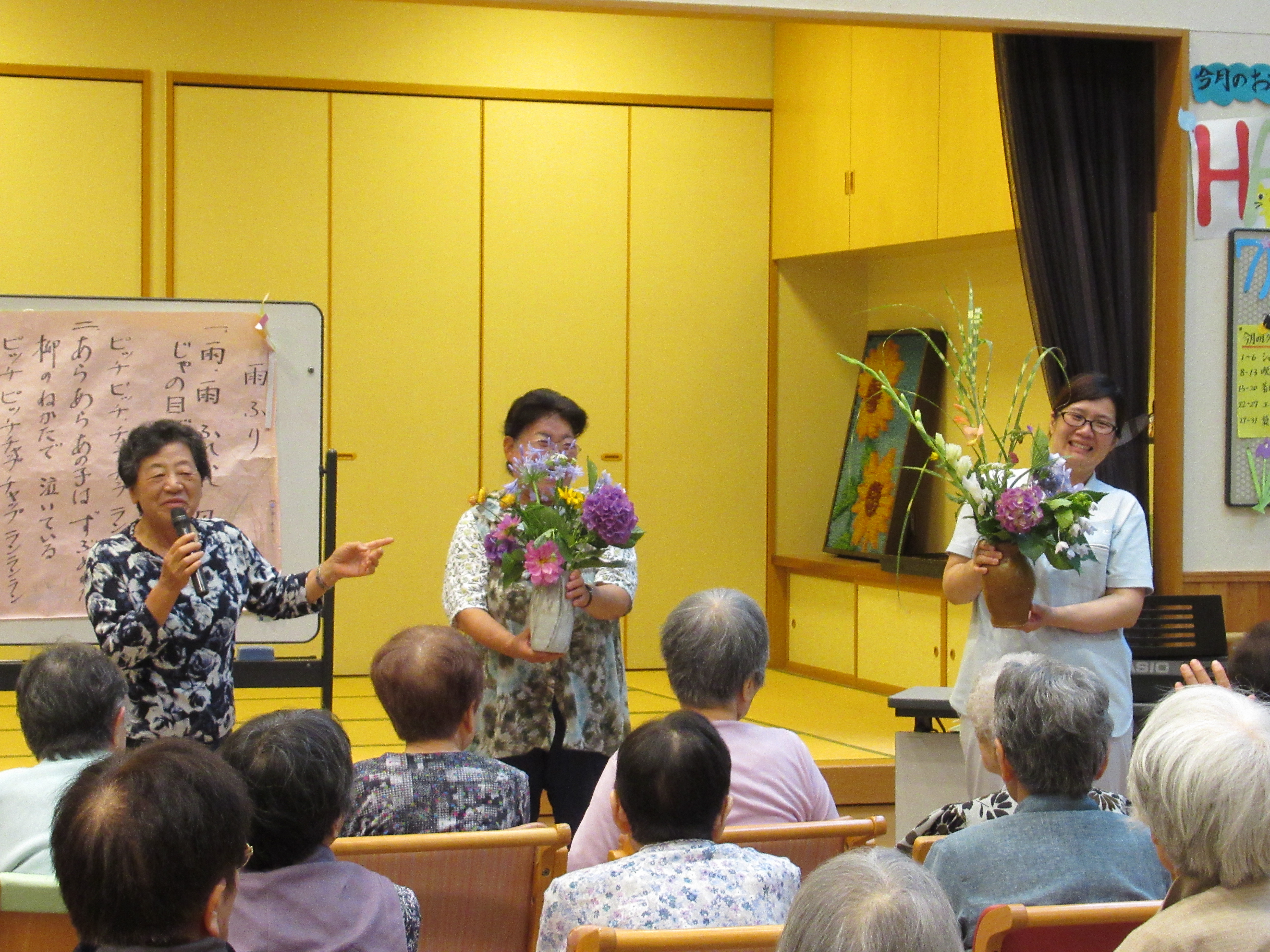 季節のお花もたくさん持って来てくださり、利用者の皆さんと「この花どういう名前でしたかね?」「この時期よく見る花やね」など会話も弾みました。