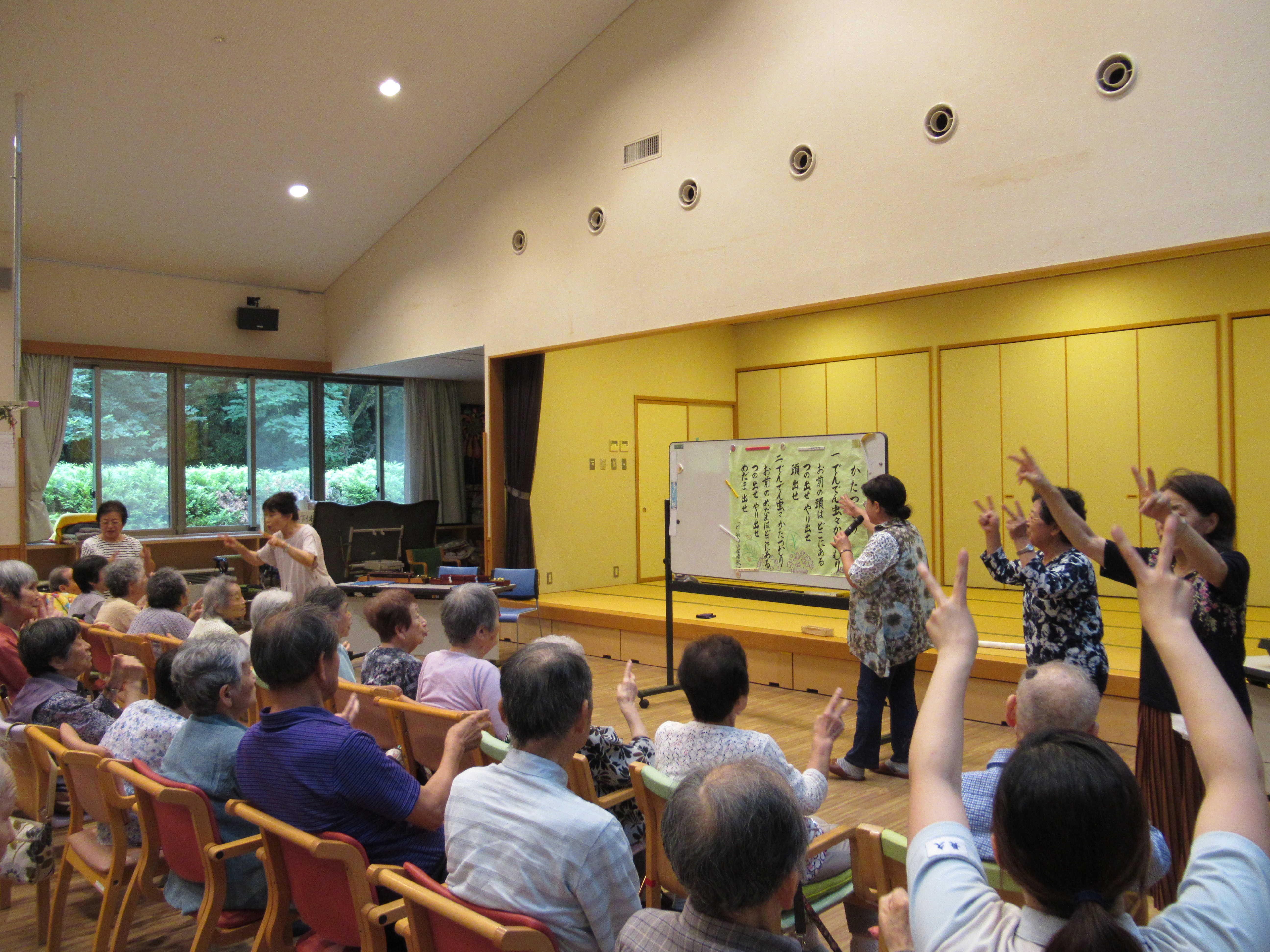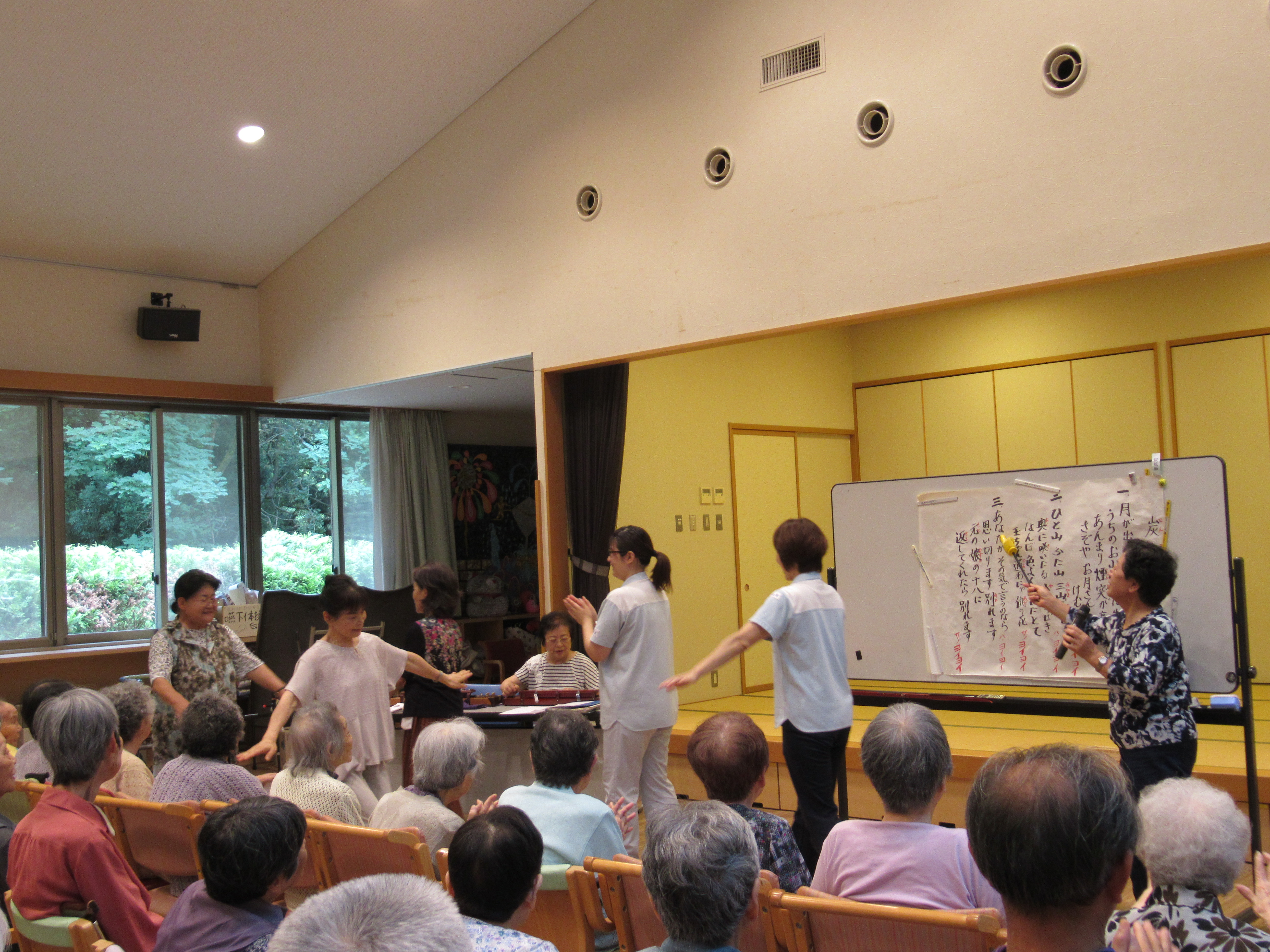 『炭坑節』は大正琴の演奏に合わせて、職員も一緒に踊りました。利用者の皆さんも手踊りをしたり、手拍子をして楽しまれていました。