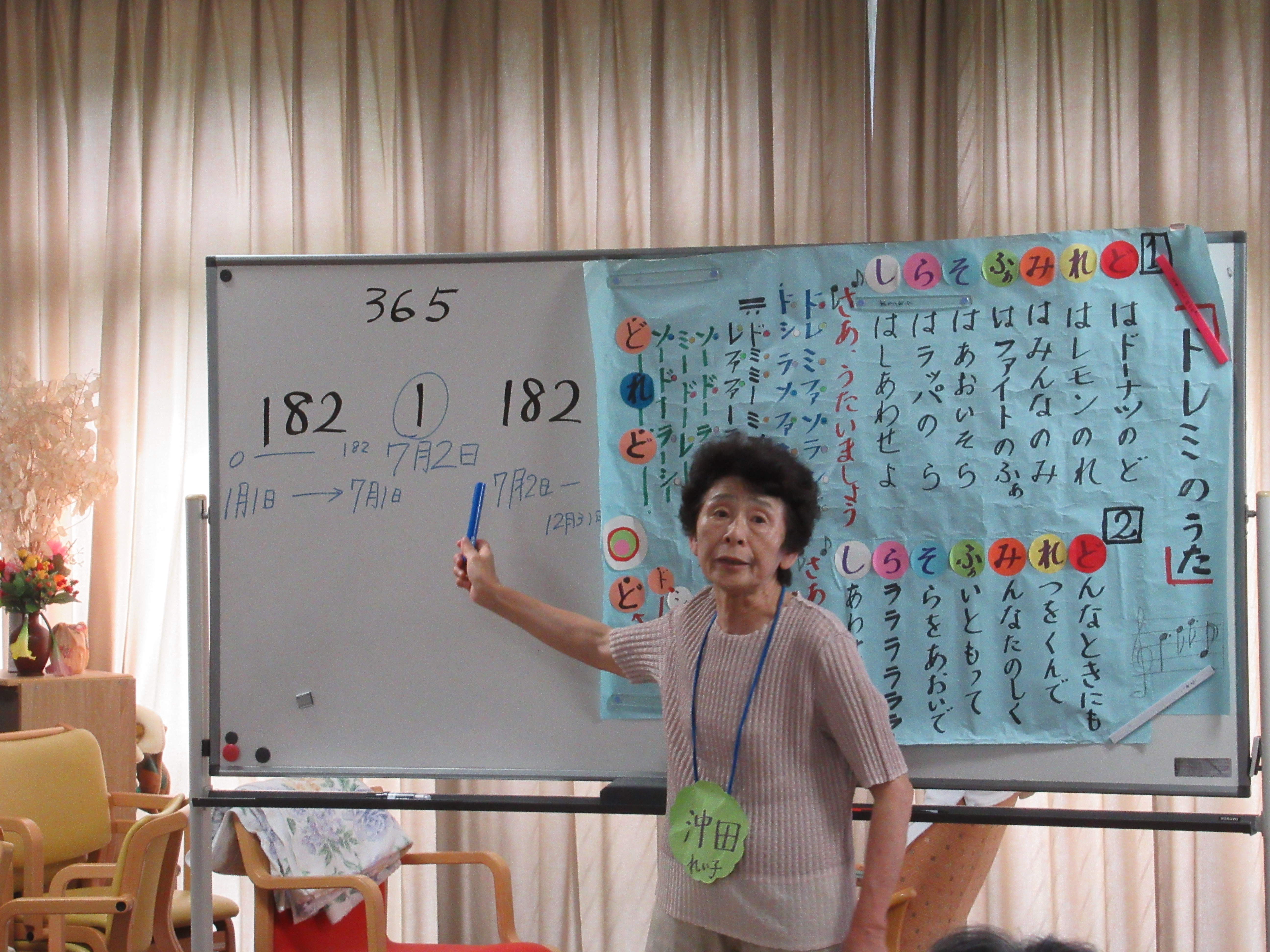 そして、今日7月2日は「へその日」だったそうです。1年のちょうど真ん中の日に当たるというお話をしてくださり、利用者の皆さんも「へぇ~」「そんながやぁ」と感心しておられました。