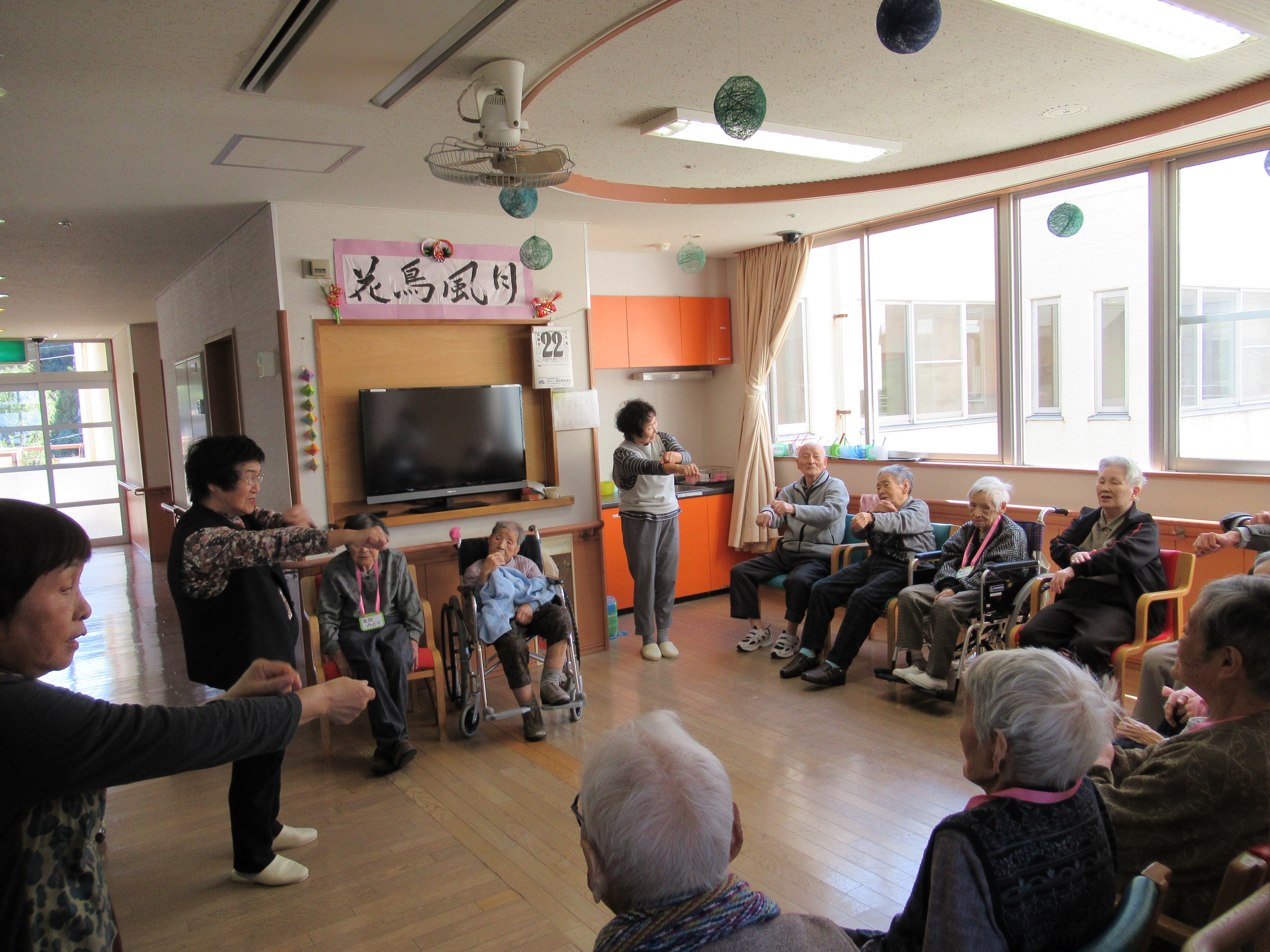 利用者の皆さんも馴染みのある曲が多く、曲名だけではピンとこなかった方も歌が始まると自然と口ずさんで大合唱となりました。
