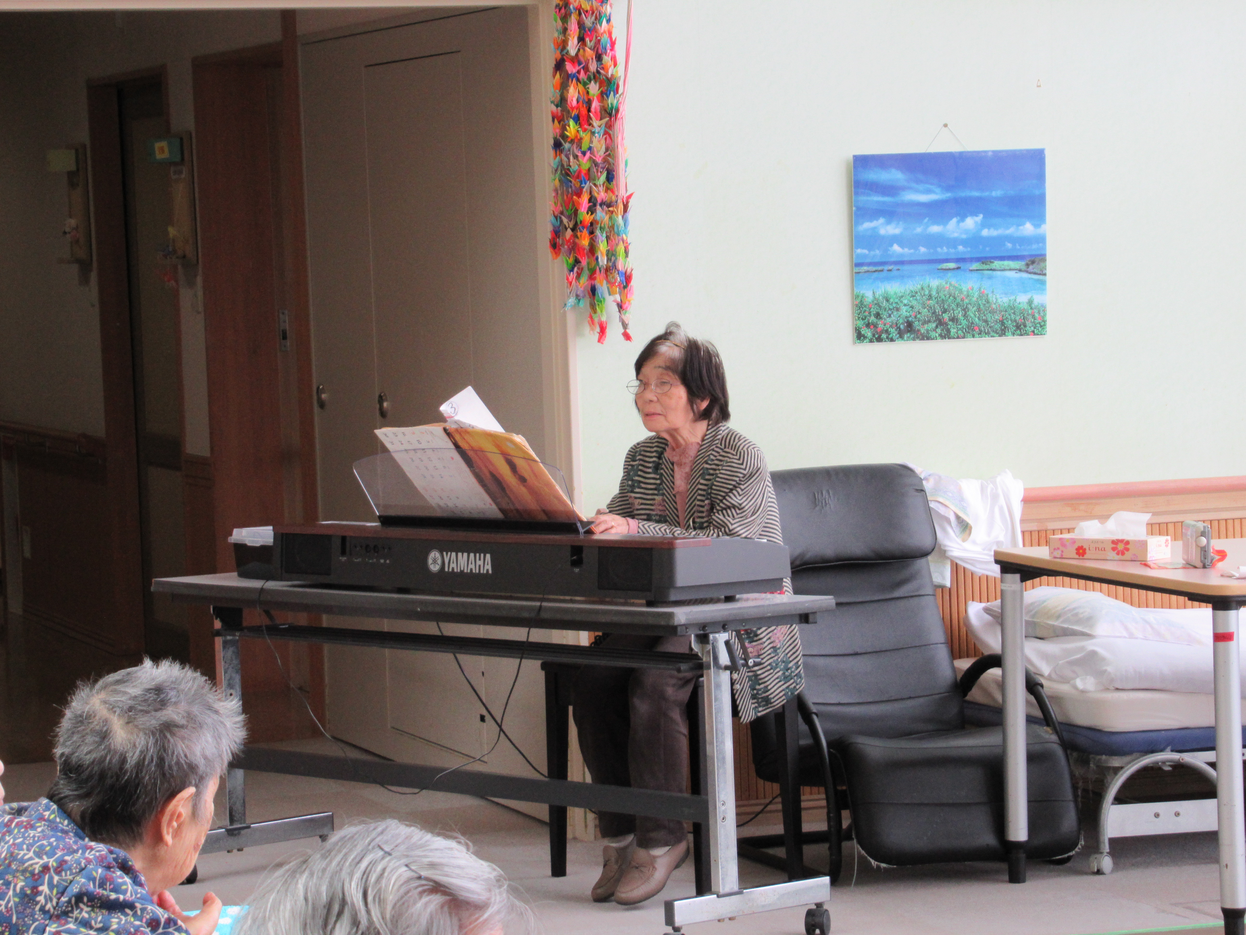 歌謡曲をはじめ、ピアノでの手遊び歌など様々な歌で楽しませてくださいました。