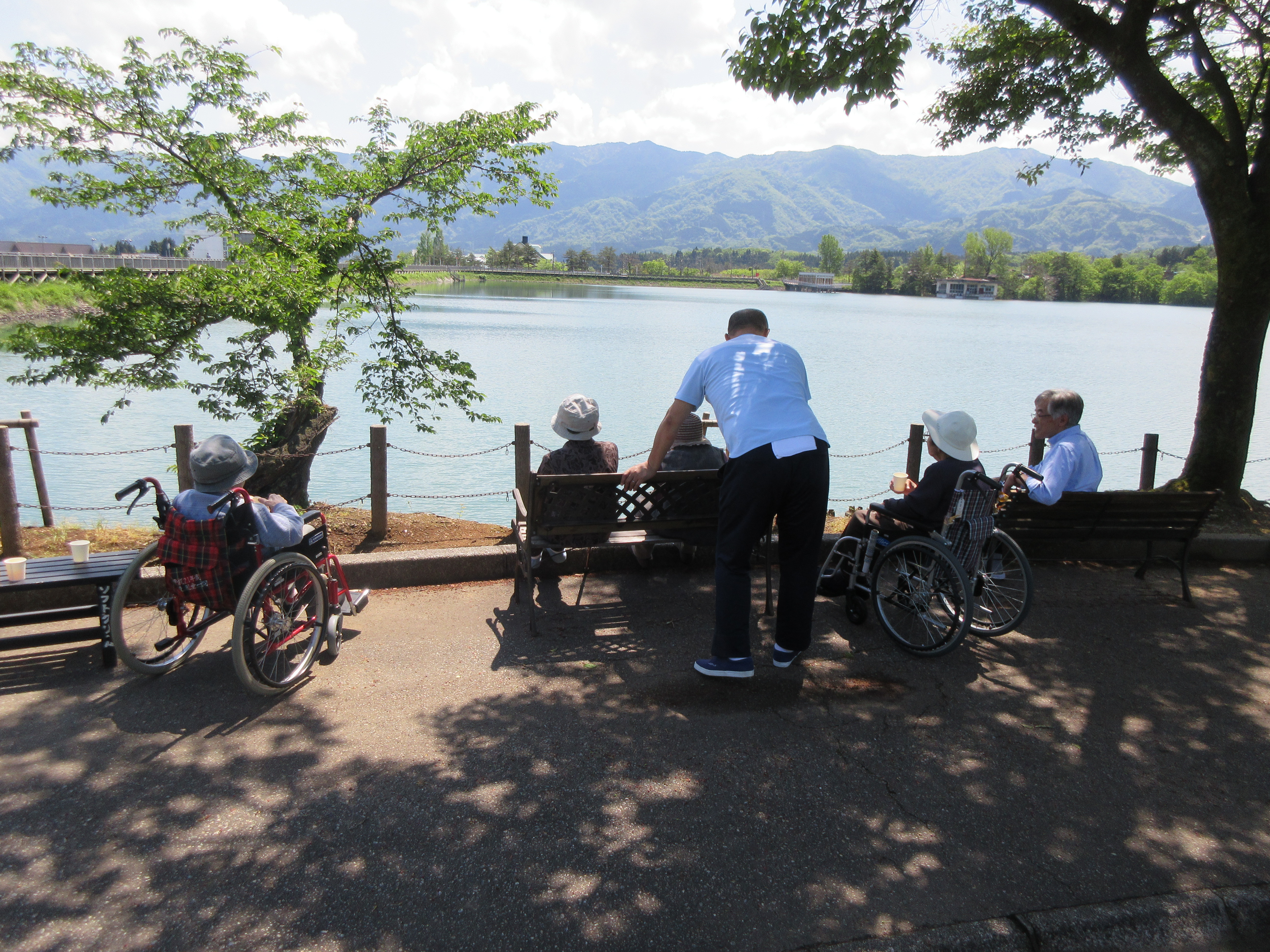 今日は足をのばして桜が池まで行きました。車の中からの眺めも楽しみながら、車から降りてジュースを飲んだりとゆっくり外出を楽しまれました。