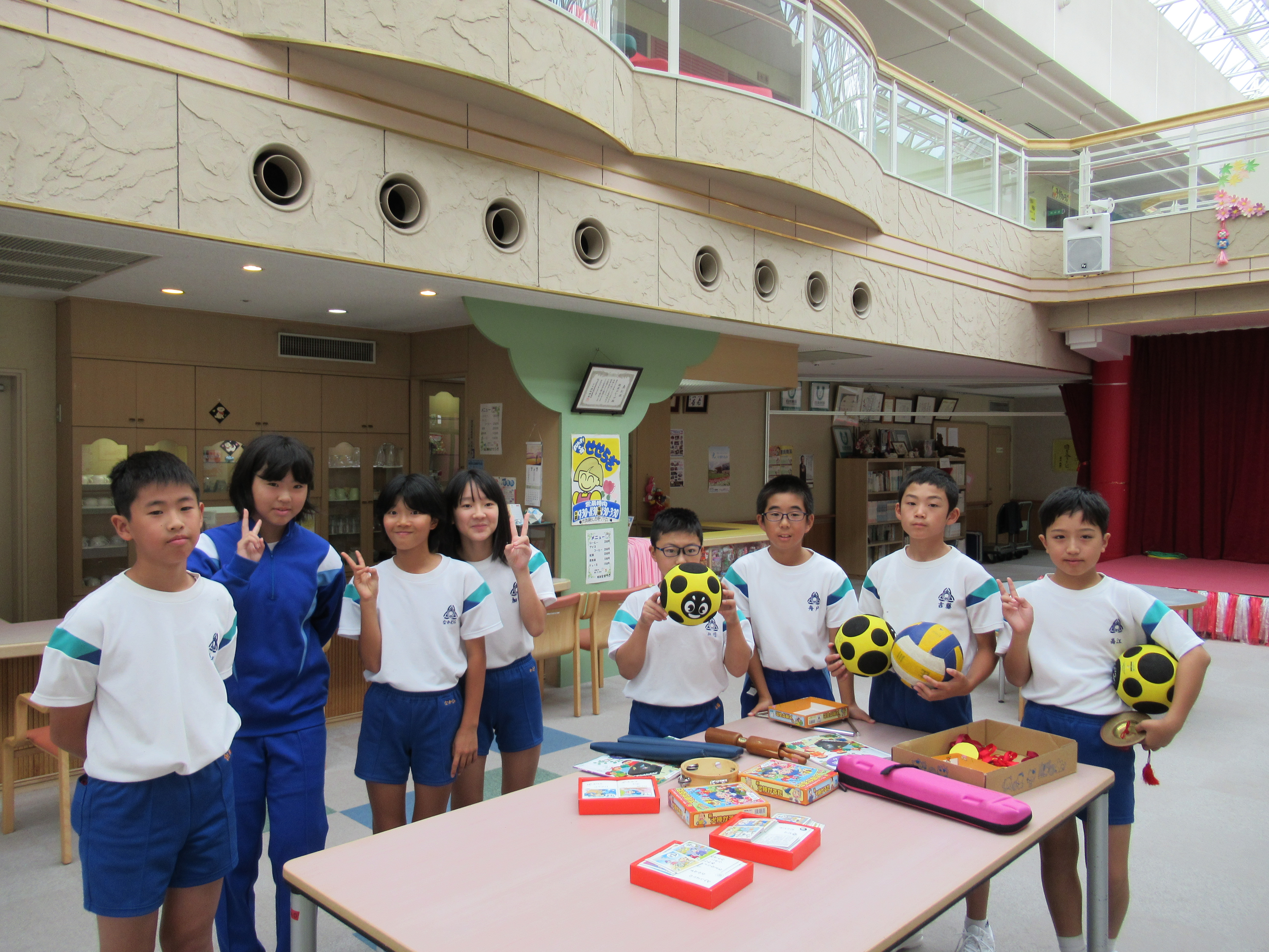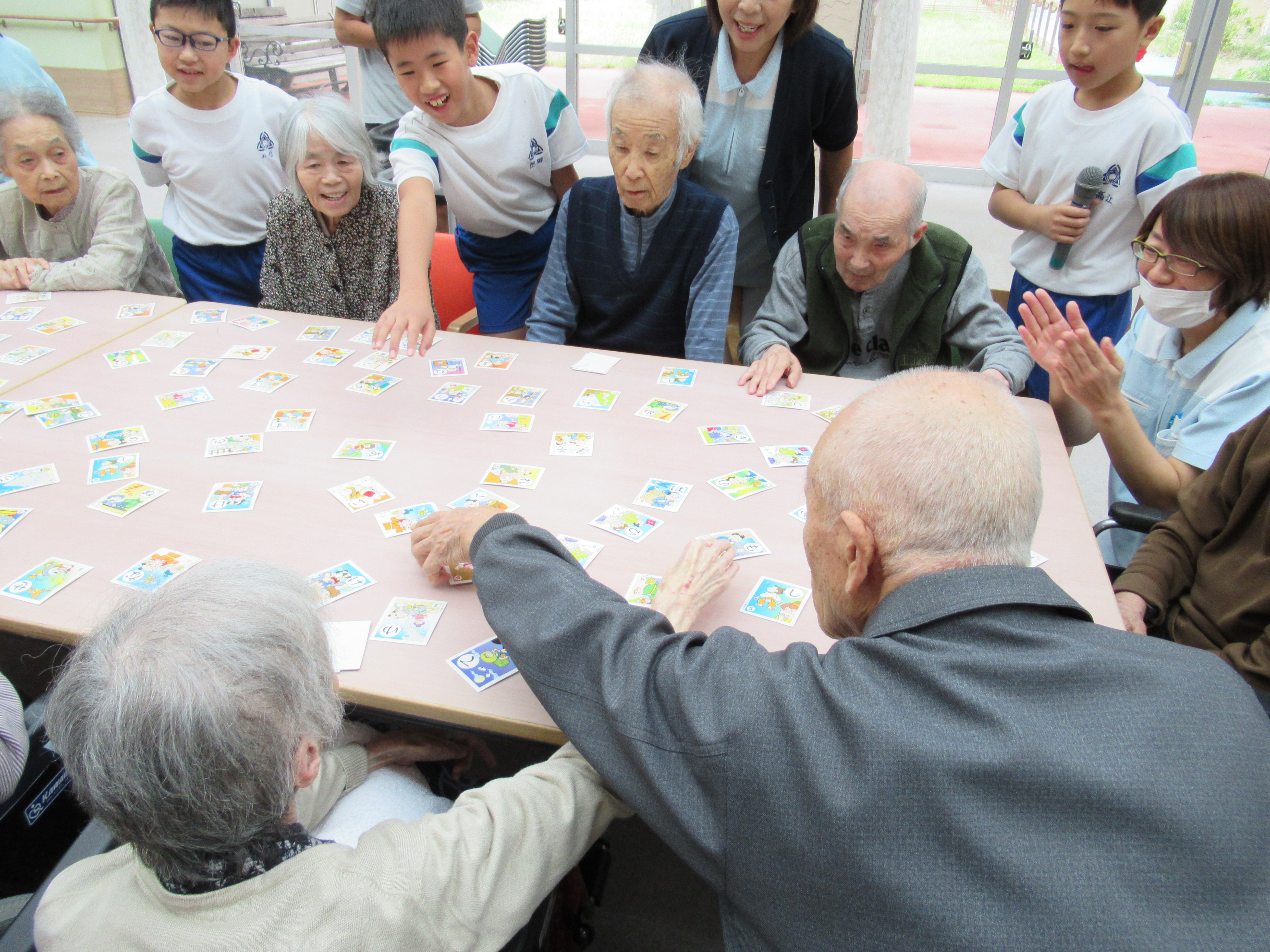 今日の日のために球回しゲームやかるたとりの準備をしてきてくださり、利用者の皆さんと楽しいひと時を過ごすことができました。