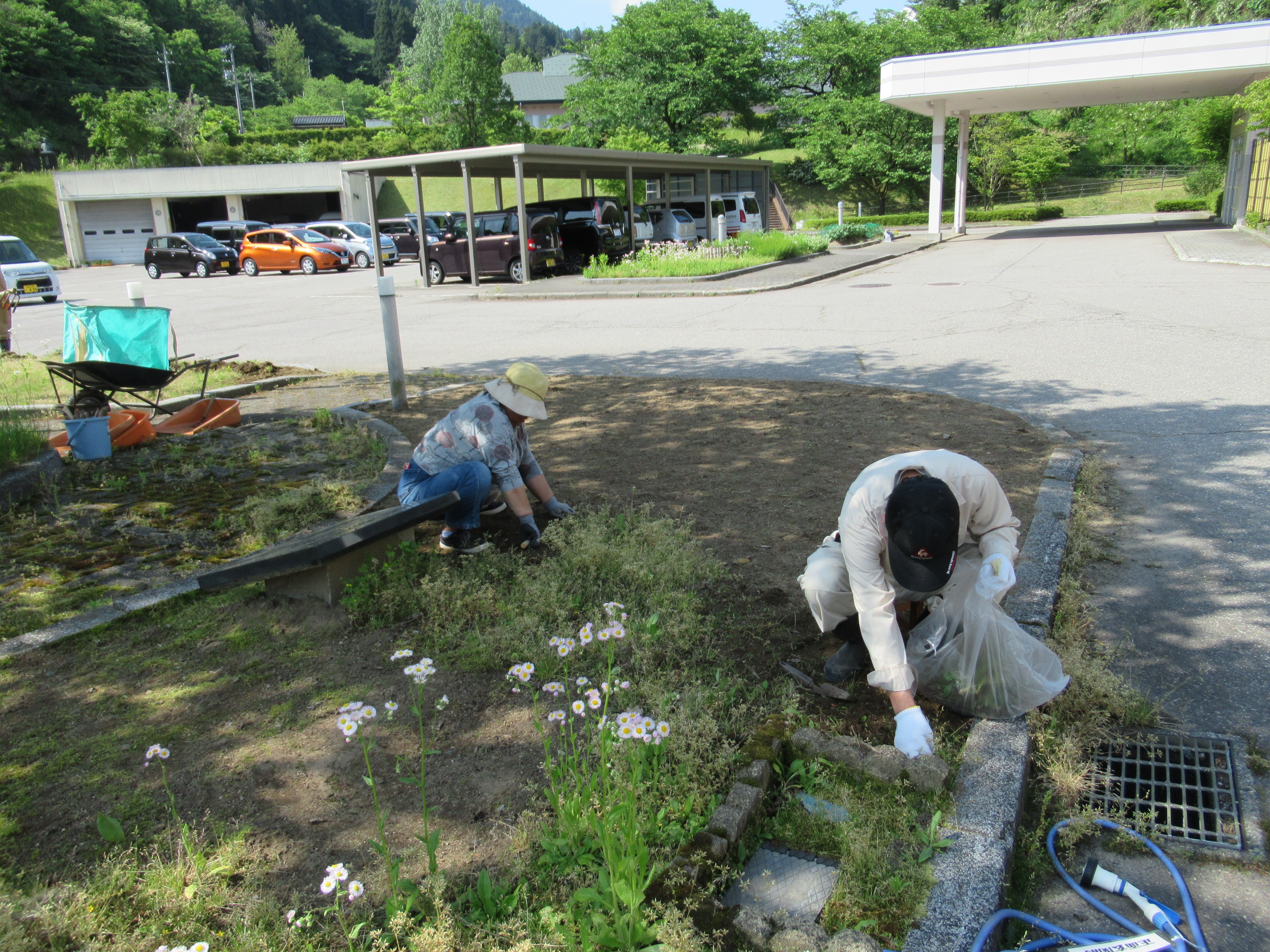今年初めての花壇での活動だったこともあり、かなり草が生えていました。