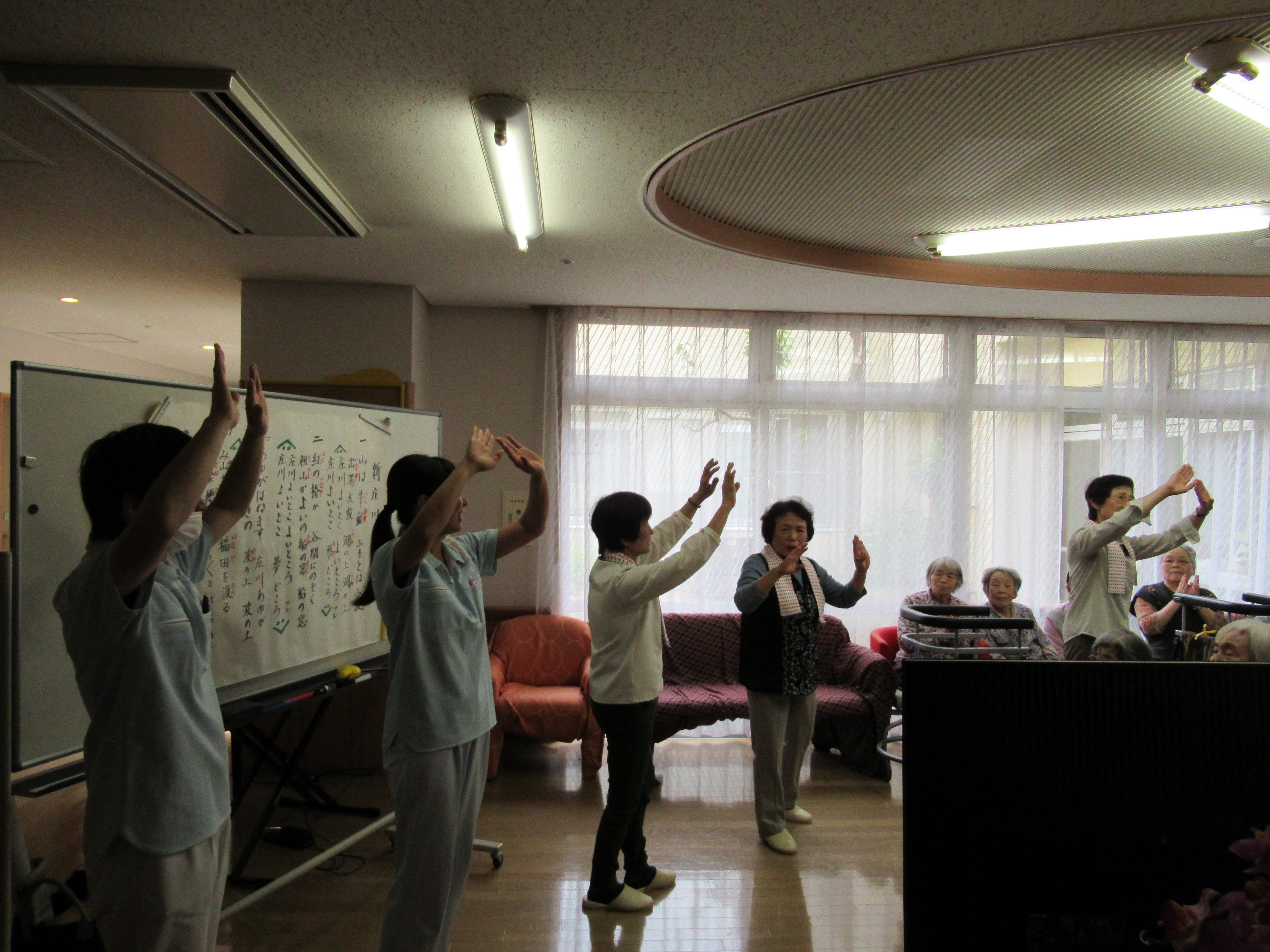 いよいよ庄川観光祭が週末になるということで、職員も交えて庄川音頭を踊ったり、夜鷹の歌を歌いました。