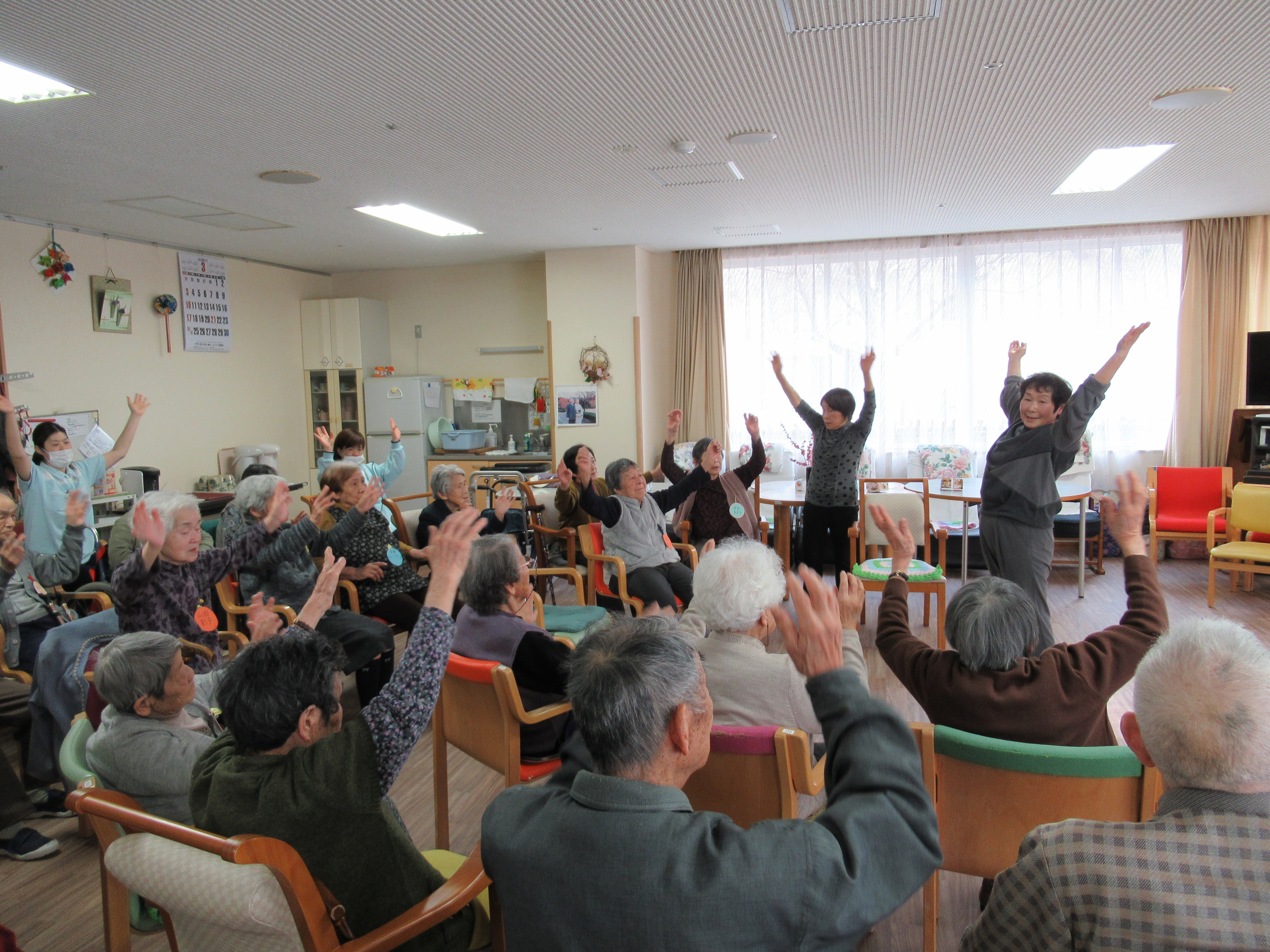 『365歩のマーチ』では、軽快な音楽に合わせて体を動かし体も温まりました。